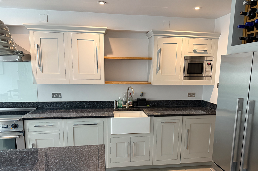 The aim was to create a more bespoke, high-end finish using kitchen spray painting, along with updating the handles and overall appearance.