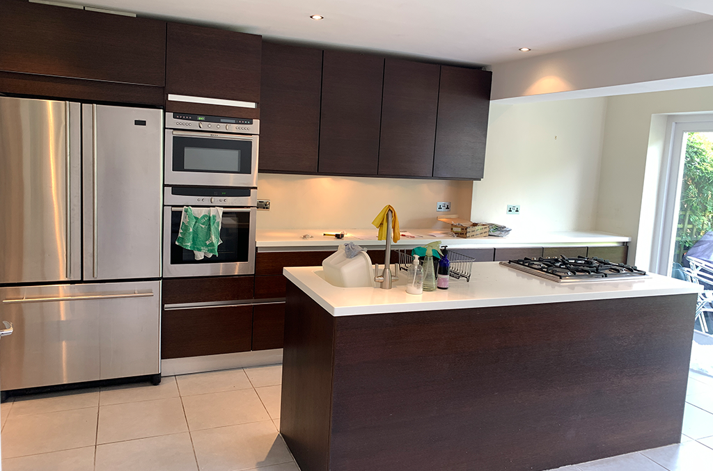 This kitchen in Oxshott, Surrey featured dark oak veneer slab doors which, while well laid out, were starting to look tired and dated.