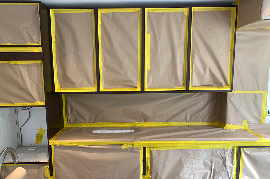 Doors were measured and marked to ensure the new handles would be perfectly aligned and consistent throughout the kitchen.